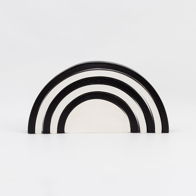 Y tantas otras cosas por descubrir con el ARCOÍRIS DE 6 PIEZAS. Sumergidos en la simpleza del arcoíris nos adentramos a un mundo mágico, descubriendo un amplio abanico de posibilidades por su gran versatilidad, dado que sus piezas pueden ser apiladas, ordenadas por tamaño, alineadas, y con ellas construir innumerables escenarios de mayor tamaño que recreen historias de la vida real (pueden ser puentes o túneles para los autos, torres, montañas, casas para los muñecos, laberintos de bolitas) fomentando el juego simbólico, la creatividad y la imaginación. Sus piezas pueden apoyarse desde diferentes bases otorgando la posibilidad de construir figuras tanto bi como tridimensionales, de gran altura o superficie. Fomenta la estimulación de funciones cognitivas como el uso de la lógica, la concentración, la atención, la resolución de problemas, presentándose desafíos de equilibrio y contrapesos en las construcciones. Por tener duplicadas sus piezas ofrece un plus de estimulación, pudiendo trabajar con él las simetrías, categorizar las piezas por tamaño y color. Es un producto tan versátil que se complejizará a medida que el niño crezca y desarrolle habilidades.