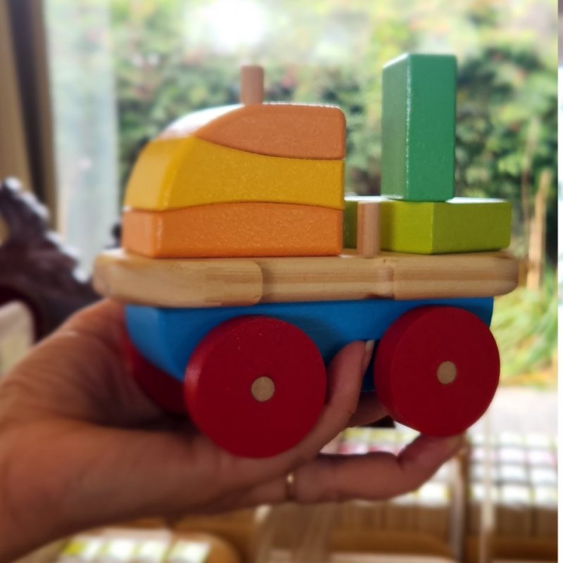 Rodado didactico de bloques desarmable, juego de ensarte, rompecabezas y arrastre.
